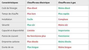 De nombreuses différences sont à constater entre le chauffe-eau électrique et à gaz :